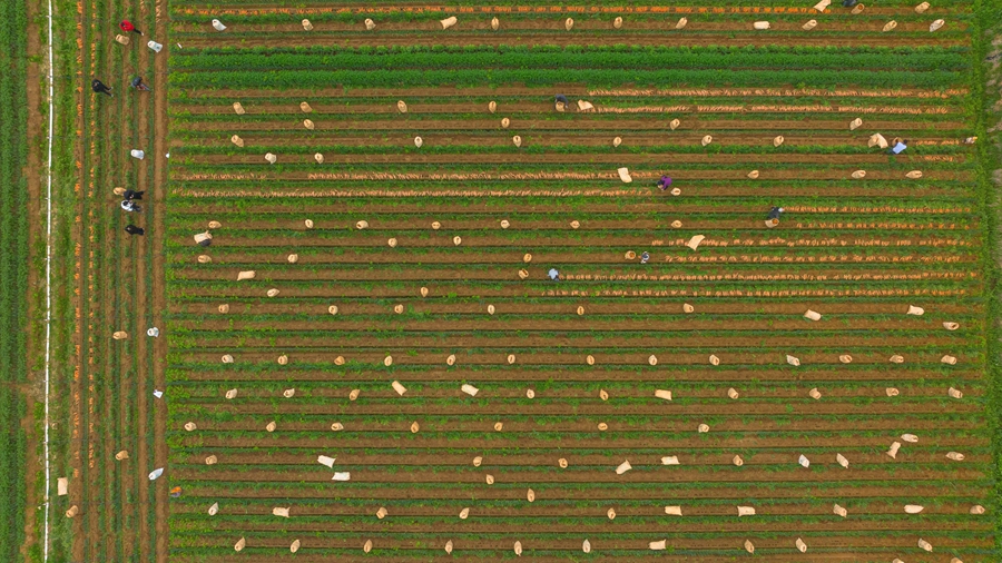 近日,首批约700吨胡萝卜正式采收。工人们分工有序,拔萝卜、去缨、装袋、运载衔接流畅。
