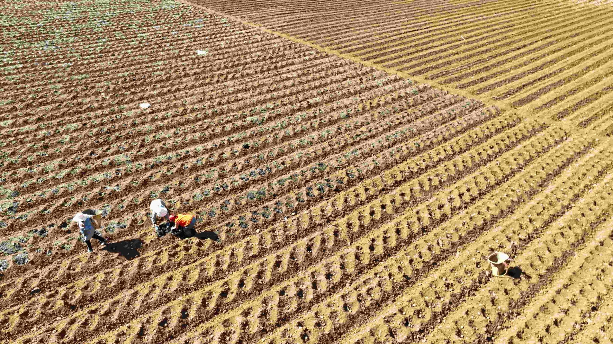 嘉河河畔,冬日田垄暖意涌动、耕作不停。在农业技术人员的现场指导下,工人们将一个个芽头饱满的马铃薯种薯放入种植坑,随后覆盖厚厚的农家肥。这是促进马铃薯生长、保证口感的关键。