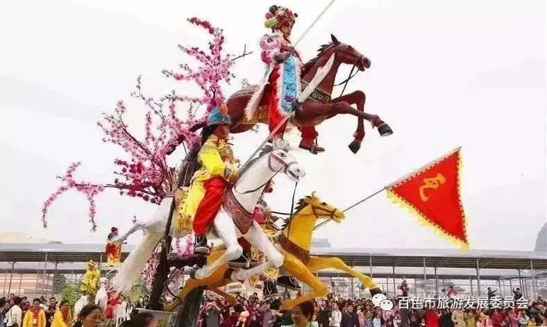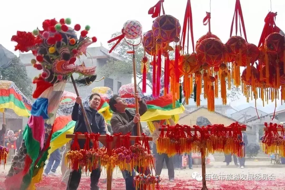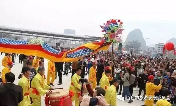 初七,是靖西人民喜庆的节日。因为在这一天,来自全市各区及乡镇的民俗表演队将集中在体育广场,为民众献上新年的祝福及精彩的民俗表演,每年也有很多全国各地的游客专程来靖西观看这个巡演。