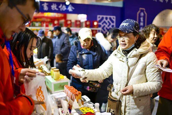 “展会上的产品种类多、品质好,价格还实惠,太便民了!”“我之前就经常买‘泉水人家’的授权产品,品质有保障,这次特意和邻居一起来回购。”市民赵女士和吴女士提着满满当当的年货,脸上洋溢着满意的笑容,满载而归。