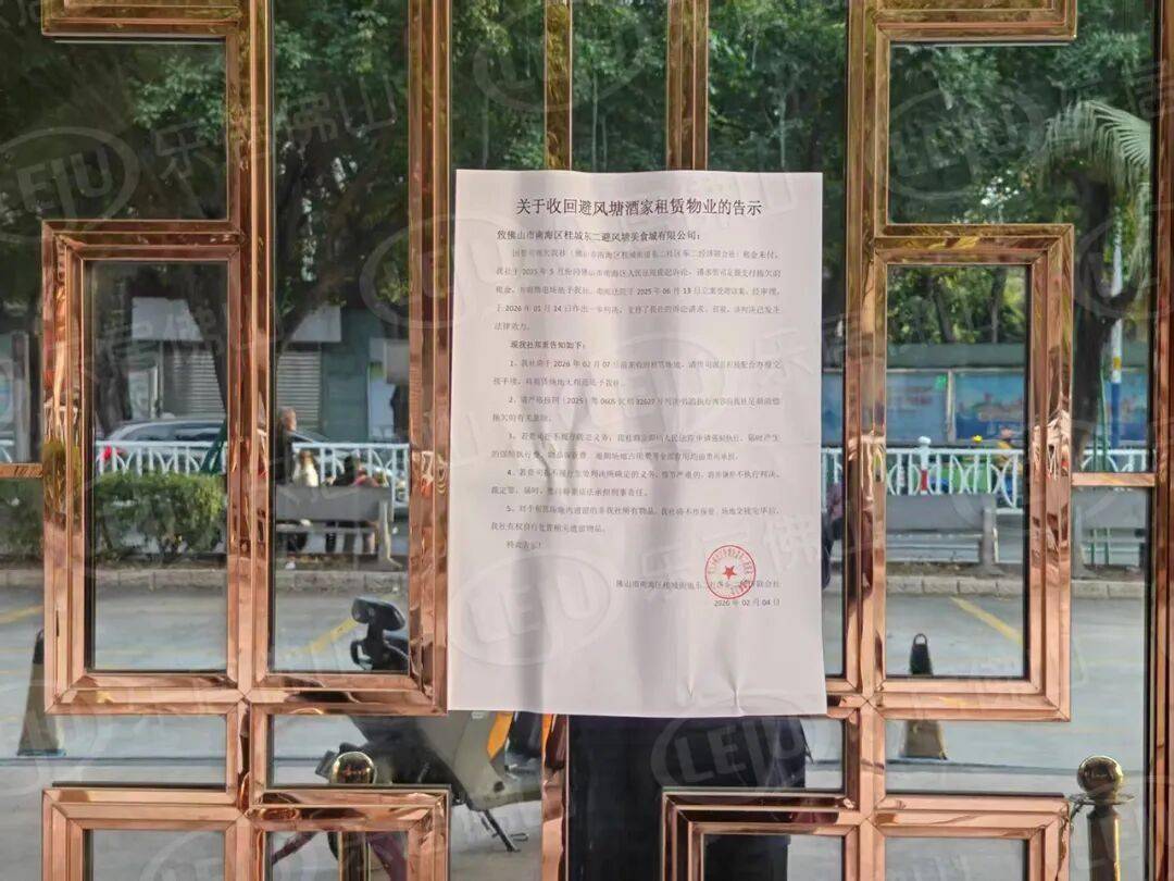 告示指出,因佛山市南海区桂城东二避风塘美食城有限公司拖欠东二经济联合社租金未付,该社于2025年5月向佛山市南海区人民法院提起诉讼并于2026年1月14日作出一审判决,根据判决,避风塘美食城公司须于2月7日返还租赁场地并依法足额清偿拖欠款项。